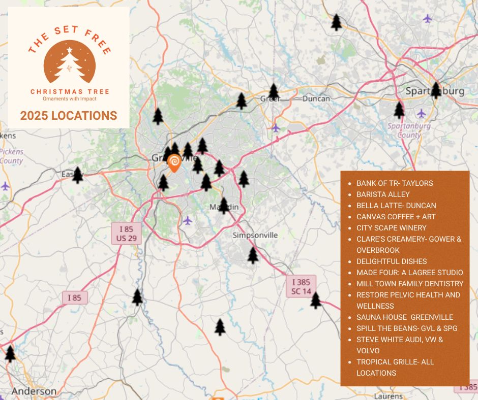 These 29 Upstate businesses are proudly hosting Set Free Christmas Trees in 2025: